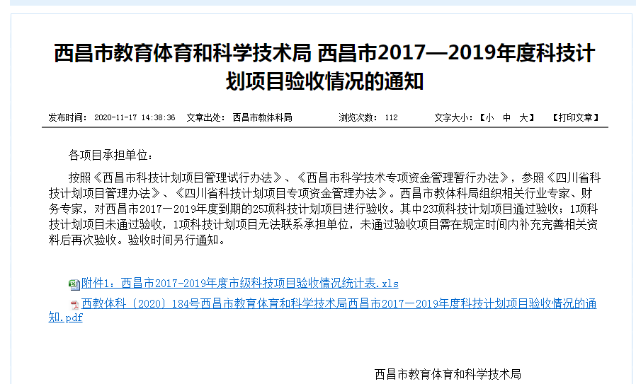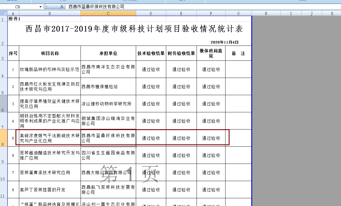 11月17日西昌市教育體育和科學(xué)技術(shù)局在西昌教育信息業(yè)務(wù)系統(tǒng)網(wǎng)公布了西昌市2017-2019年度科技計(jì)劃項(xiàng)目驗(yàn)收情況,本次有23項(xiàng)科技計(jì)劃項(xiàng)目通過(guò)驗(yàn)收,其中由西昌市藍(lán)鼎環(huán)?萍加邢薰境袚(dān)的市級(jí)科技計(jì)劃項(xiàng)目《高硫濃度煙氣干法脫硫技術(shù)研究與產(chǎn)業(yè)化應(yīng)用》在列。
