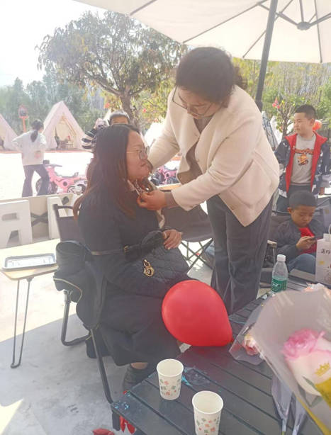 隨后,在“日落之前親子樂園”營地,公司組織了一場方巾系法分享會。旨在教授女職工們如何利用方巾打造不同風格的系法,既實用又美觀,充分展現女性的獨特魅力;顒蝇F場講師通過生動的演示和詳細的講解,向女職工們展示了多種方巾系法,包括優(yōu)雅的蝴蝶結系法、花瓣節(jié)系法、麥穗節(jié)系法、時尚的領巾系法以及簡約的包頭系法等。女職工們積極參與,紛紛動手嘗試,現場氣氛熱烈而活躍。